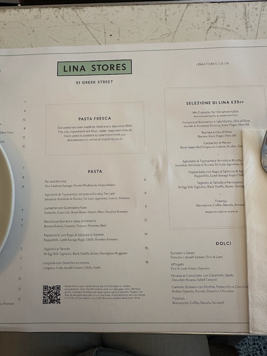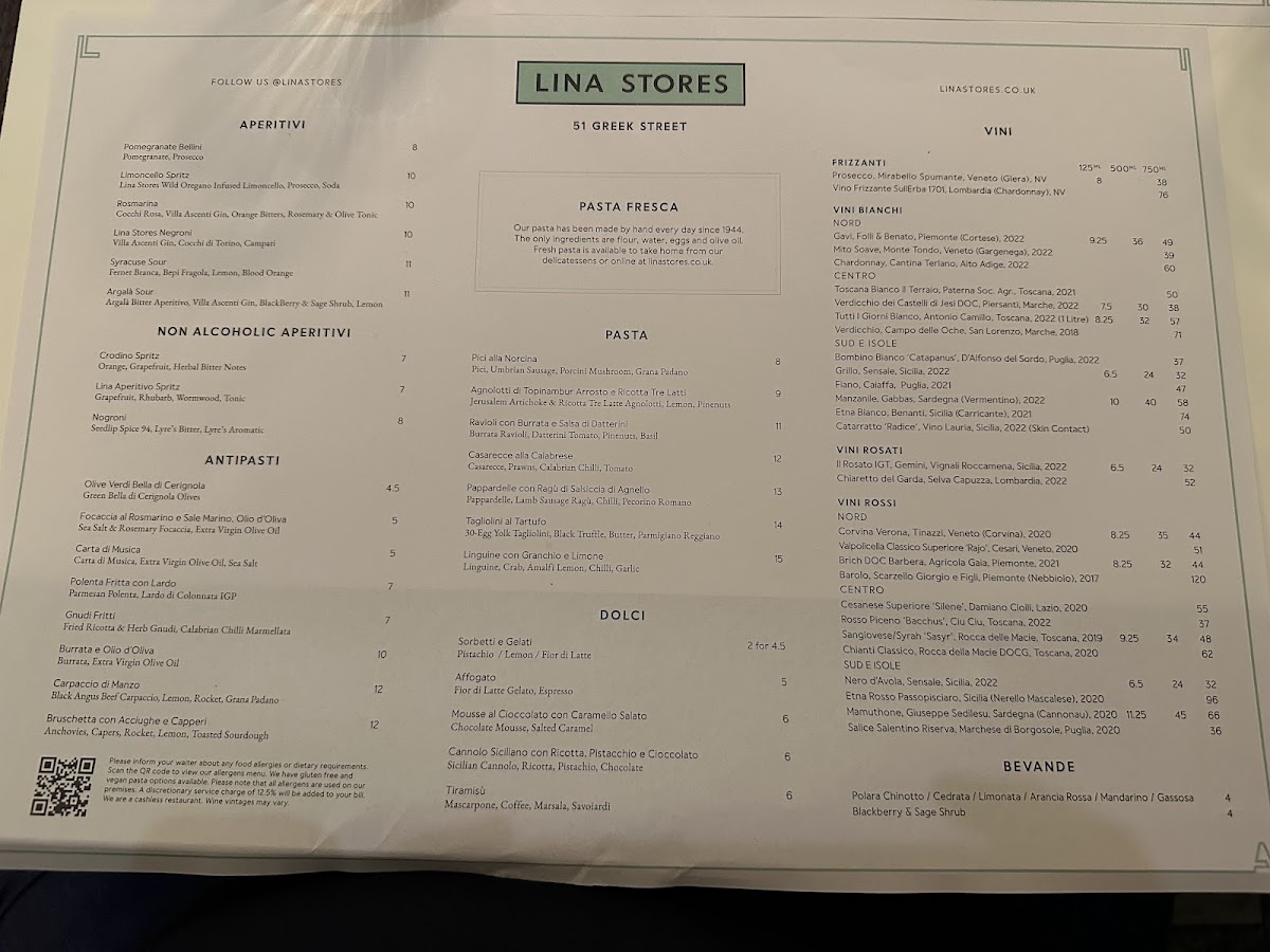 At Lina Stores Soho - Italian Restaurant, culinary passion meets tradition in every dish. Located on 51 Greek Street, this vibrant eatery offers an authentic Italian experience that begins with their enticing Antipasti. Favorites like the Prosciutto di Parma and Burrata di Bufala showcase the freshest ingredients. Vegetarian options shine, with the Tagliolini al Tartufo delivering rich truffle flavors that transport you to the heart of Italy.